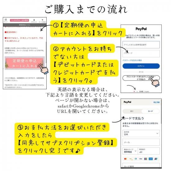 【定期便の申込 カートへ入れる】ボタンより、PayPal決済にて承ります。
